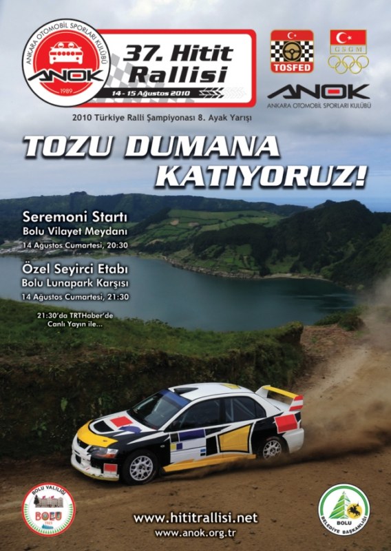 ANOK (Ankara Otomobil Sporları Kulübü) ‘nün organize edeceği 37.düzenlenen Hitit Rallisi 14-15 Ağustos tarihleri arasında Bolu’da düzenlenecek. 2009’da 30’un üzerinde Ayak Takımı üyesinin de katılmış olduğu bu büyük yarışı kaçırmayın.