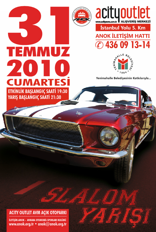 Ankara Otomobil Sporları Kulübü, 31 Temmuz Cumartesi günü, İstanbul Yolu üzerinde bulunan ACITY Outlet Center’da Slalom yarışması düzenliyor. Katılımın 30 araçla sınırlandırıldığı etkinlikte gerçekleştirilecek şovlarla Ankaralılar otomobil sporu ile olan özlemlerini dindirecekler.