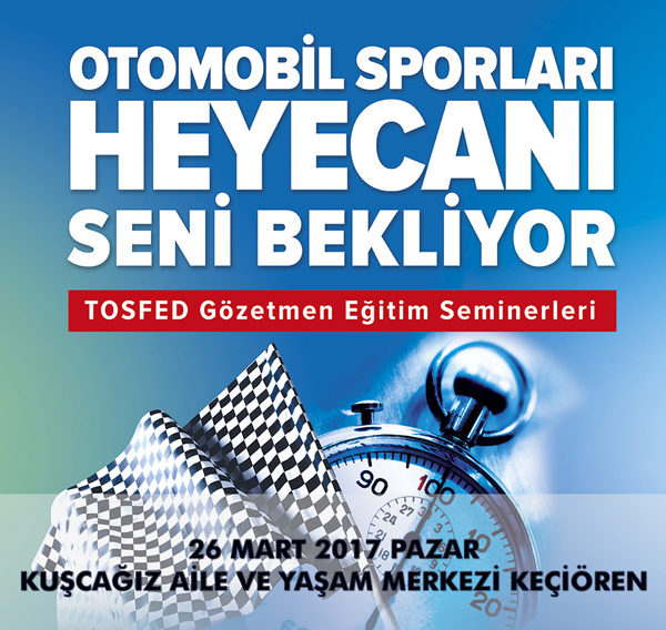 Otomobil Sporlarına gönül veren ve bu sporun içerisinde görev alıp heyecanı daha yakından yaşamak isteyen herkesi 2017 Yılı Yeni Gözetmen Eğitim Seminerine bekliyoruz.